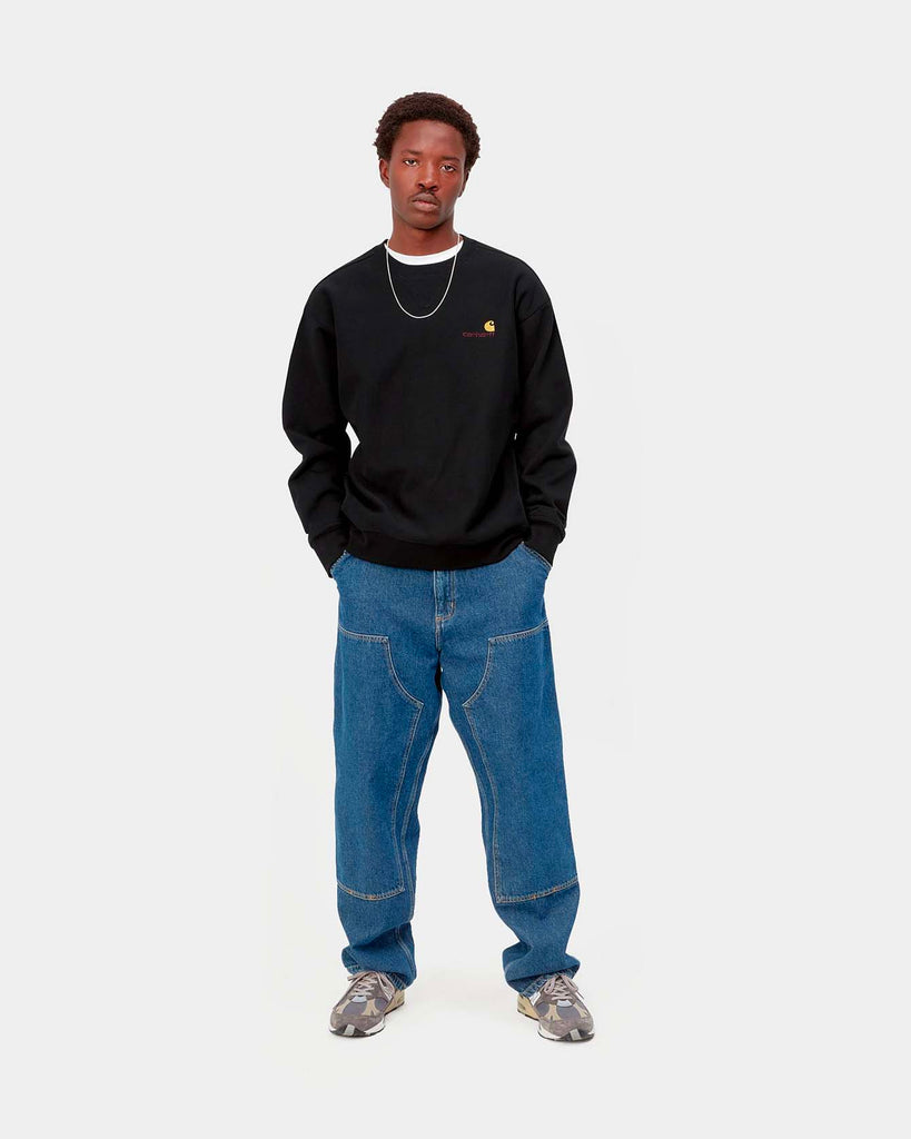 Made from heavyweight, cotton-poly jersey fabric, the American Script Sweatshirt has been brushed to give it a fleece-like backing. The garment has a loose fit and is detailed with a crewneck collar, as well as a ribbed hem, cuffs, and side panels. American Script embroidery appears at the chest.
